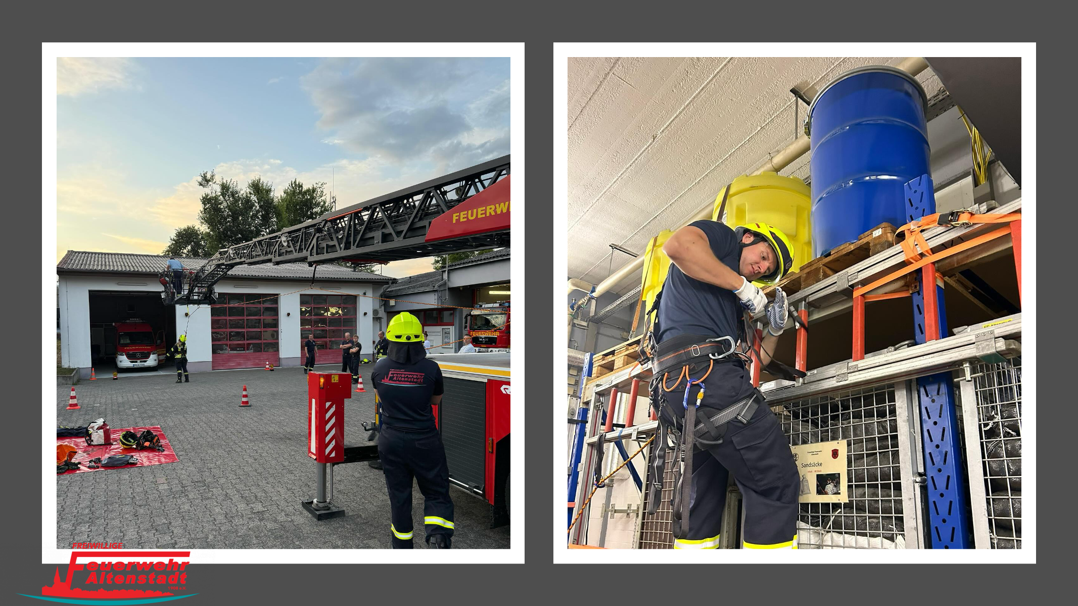 “. Hier konnten die Kamerad an drei Stationen das vorher Theoretisch besprochene in die Tat umsetzen. Hier galt es verschiedene Szenarien im Bezug auf Halten/Rückhalten,Aufangen und das TopRope Verfahren mit der Drehleiter durchzuführen.
