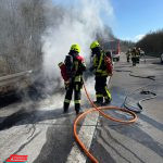 Zum zweiten PKW-Brand dieses Jahr wurde der Löschzug 2 auf die Bundesautobahn 45 in Fahrtrichtung Nord alarmiert. Bereits auf Anfahrt des ELW (Einsatzleitwagen) und des ersten Löschfahrzeuges konnte, durch den schon an der Einsatzstelle befindlichen Gemeindebrandinspektor, der Vollbrand des PKW bestätigt werden. 👨🚒Maßnahmen vor Ort:• Brandbekämpfung durch einen Trupp unter Pressluftatmer (PA)• Absichern der Einsatzstelle mittels Verkehrsicherungsanhänger (VSA) und Vorwarntafel sowie Sperrung der rechten Fahrspur• Abstreuen der ausgelaufenen Bertiebsmittel• Verständigung der Autobahnmeisterei• Nachlöscharbeiten• Aufgrund der […]